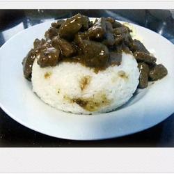 13.On rice? Top it with beef cubes and it's ready! It tastes great!