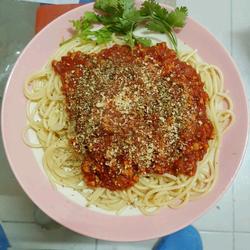 4.Cook the noodles, pour the sauce on them, add pizza grass and pasta cheese