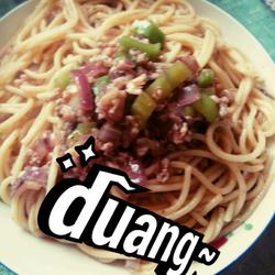 3.Put some salt and oil into a pot of water and bring to a boil.Cook for 10 minutes.Drain, add to sauce pan and stir-fry!
