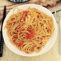 When cooking pasta, it is best to add salt and a little oil to the water to make it easier to absorb the flavor.In addition, if you like garlic and onions, you can also add them and saute them with tomatoes