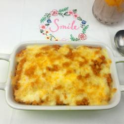 8.Pour into the baking pan and spread a layer of horseradish Zurella cheese, put in the oven: heat 180 degrees for about 10 minutes!