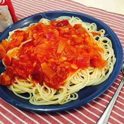7.After the pasta is softened and cooked, remove it and put it on a plate, and pour the sauce.