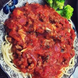 7.At this time, the tomato meat sauce is also ready, pour it directly into the noodles