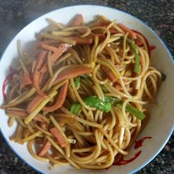 If you like a stronger pasta, you can add some salt when cooking the pasta, or you can shorten the cooking time because it still needs to be fried.Ham sausage contains chicken essence, so there is no need to add more chicken essence.You can add other vegetables according to your personal taste, but you have to pay attention to the things that are avoidable!