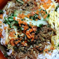 2.Cook the noodles according to your personal preference for softness and hardness, and soak them in cold water.Then put it into a bowl, add the prepared seasonings, mix well and enjoy the delicious cold noodles.