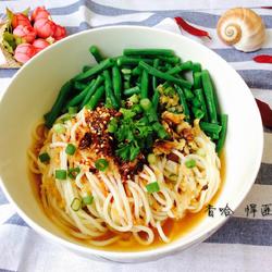 21. Take out the amount you eat, add cowpeas, chopped walnuts or peanuts, and put Add two spoons of diluted sesame sauce, scoop an appropriate amount of sauce (add it according to your own taste, taste it beforehand), add an appropriate amount of oil and pepper, add chopped green onion, a little coriander and you are ready to eat.If you don’t like coriander, you can leave it out.