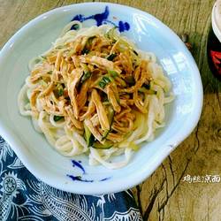 14.Pour the noodles into a bowl, top with shredded chicken, and complete
