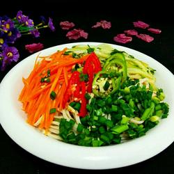 Carrot shreds ( appropriate amount ) | Green and red pepper shreds ( appropriate amount ) | |