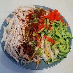 Shredded radish, shredded cucumber (a little) | Chili noodles (a little span> ) |