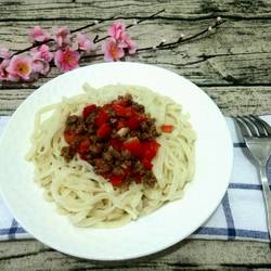 10. Place the diced red pepper meat on the noodles and enjoy!