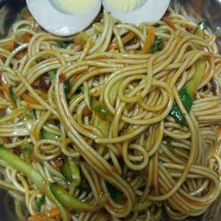I use salt water noodles , thin and round noodles, very delicious.It is best not to use flat noodles.Personally, I think it is easier to stick to one piece, one lump after another