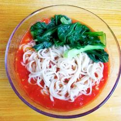 2. Boil water in a pot, blanch the rapeseed, and cook the noodles, then pour cold water and set aside.In another pot, pour an appropriate amount of corn oil.Heat the oil at 70% heat.Add minced garlic and minced pepper and sauté until fragrant.Add tomatoes and fry until soft.Sprinkle in white pepper, sugar and salt and stir well.Pour in a little water.It's ready to be cooked (I forgot to take pictures of the steps, so I omitted several pictures)