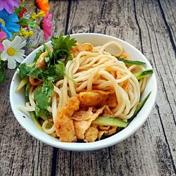 9.Cucumber shreds, eggs strips, add salt, light soy sauce, vinegar, sesame oil, and chili oil and stir evenly