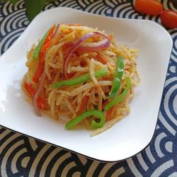 9.Add the steamed potatoes, rub and stir-fry evenly
