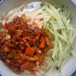 5. Boil water to cook the noodles, add cold boiling water, take them out and put them in a bowl, water them with marinade and add cucumber shreds.I love this in summer.