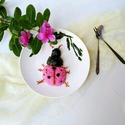 use chocolate After melting, draw a line in the middle of the rice, then draw 6 little feet, and use two grains of rice for the eyes.