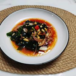 1.Ingredients preparation: Soak wakame in water, cut onion into thin strips, and cut garlic, millet, and pepper into small pieces.