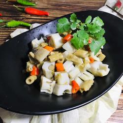 Pour in a little water before serving.The steam will cause the lotus root to absorb the flavor of the sour bamboo shoots, making it more delicious.