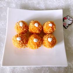 There is no need to wrap the rice balls with starch, because the rice balls themselves are very sticky.Just wrap them in bread crumbs and egg liquid.The filling can be changed to yellow peach, pineapple, banana, etc.according to your preference