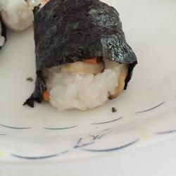 Put the vegetables into the rice, and roll the rice around the vegetables.Make dough! Finally, roll it with seaweed.