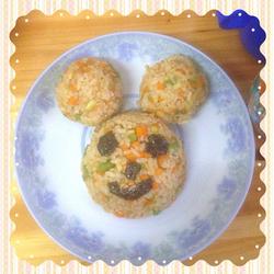 The lean meat will be more tender if added later.Little Bear uses a small bowl to hold rice upside down.The eyes, nose, and mouth are decorated with torn seaweed!