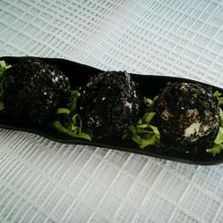 5. Evenly wrap the fried seaweed on the rice ball