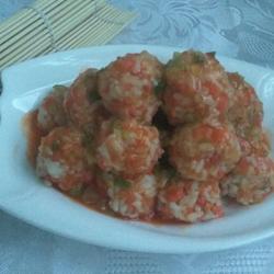 7. Pour the tomato sauce evenly on the rice balls.Very delicious rice balls are ready to enjoy!
