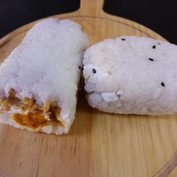 The glutinous rice cooked after soaking in sesame oil is very sweet and the fried dough sticks are crunchy.It is best to heat them before using
