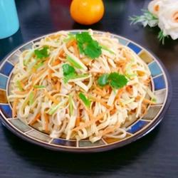 How to mix enoki mushrooms with dried tofu and shredded carrots