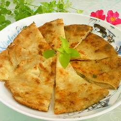 14. Prepare a bowl of mixed water with salt and chicken essence, heat oil in a pan and put it in Fry the cake over high heat until slightly brown.