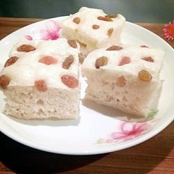 7.Sprinkle raisins evenly on the risen dough and press it slightly to prevent it from falling off during steaming