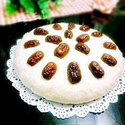 9. Spread the red dates on the surface of the dough.Steam in a pot with cold water.Turn to medium heat and steam for 15 minutes.Turn off the heat and simmer for another 5 minutes before opening the lid.