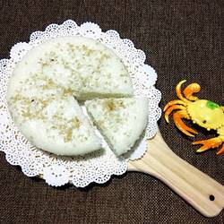 7. Stir evenly to eliminate large bubbles and pour into a 6-inch cake mold Sprinkle 80% of the inside with white sesame seeds on the surface.I poured it 50% full and deliberately added 2 muffin cups.