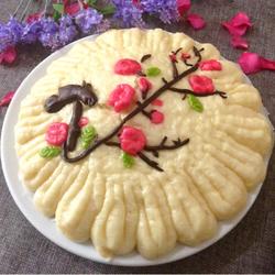 8.After the dough flowers are fermented and the cake embryo is ready, we need to make the flowers above..Use cocoa powder noodles as tree trunks, spinach juice noodles as flowers and leaves, and pigmented pink noodles as flowers.The shapes can be adjusted as you like.