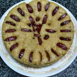 4. After fermentation doubles in size, put it into an eight-inch mold and put the red dates, and steam it for 30 minutes