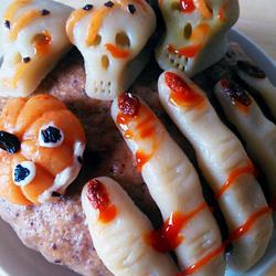 4. After the red date dough is fermented, put it in a cold pot, steam it for 25 minutes, turn off the heat and simmer five minutes.You can also steam the skull, fingers, pumpkin and red date cake together.I steamed them separately.It only takes ten minutes to boil them.(I forgot to take a picture of the steamed cake after it was steamed)
