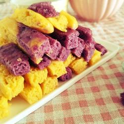 2. Steam purple sweet potato and pumpkin in a steamer for 8 minutes.Simmer for 2 minutes.Take it out after steaming.