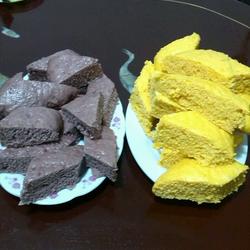 12.Hey, here is a full picture of pumpkin and purple sweet potato cakes cut into pieces and put on a plate