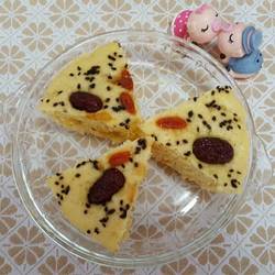 6. Turn off the heat after half an hour, wait two minutes, open the lid and take out the millet cake, cool it slightly, cut it into pieces and put it on a plate! There will be corn kernels inside when you eat it! The taste is good (*๓´╰╯`๓)♡