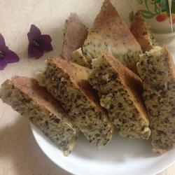 2. Mix the lotus root starch and yeast with water, add sugar and eggs and mix well.Add flour and black sesame seeds and mix well
