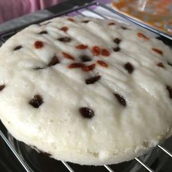 4.Pour it into a grinder or bowl.You can add red dates or wolfberries to the bottom and top.You can add any fruit according to your personal habits.Steam it in cold water and rub it with chopsticks for 30 minutes without sticking.Let's eat!