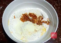 1.Pour the flour, brown sugar, milk powder and yeast powder together