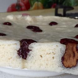 3.Steam over high heat for ten minutes and then turn to low.Slowly steam for about 20 minutes and turn off the heat.Don't rush to open the lid first.Wait for two minutes to take out the steamed cake, let it cool and then cut it into small pieces with a knife.