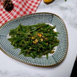 7. Pour in the blanched lentil shreds and stir-fry over high heat.