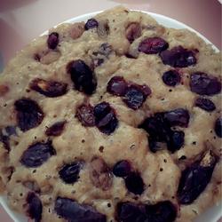 7.Almost two hours, sometimes an hour, it will almost double in size, just have a honeycomb shape.Arrange the remaining dates, raisins, and cranberries.
