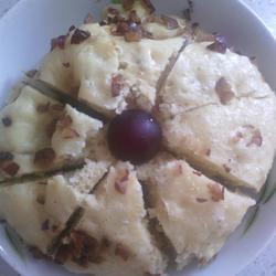 2. First chop the red dates, put the baking powder into a small bowl, add a little water to dissolve it, add the eggs and half of the chopped red dates, a little sugar and mix well, then add the flour and continue to stir until it becomes a thick paste, transfer to another oiled bowl In a large bowl, set the shape, and finally sprinkle a layer of remaining red dates on the surface