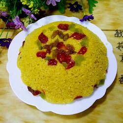 8. Sprinkle a layer of dried fruit on the waked surface and steam it in a basket for 40 minutes