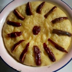8. Wait until the surface doubles in size before steaming.Place jujube slices on top.