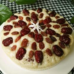 Wash the red dates and raisins in advance and soak them until soft Set aside.The yeast and sugar should be placed diagonally when kneading the dough, otherwise it will affect the fermentation.When the dough sticks to your hands when it is put into the container, dip your hands in water and it will stop sticking.Brush some oil into the container and it will be easy to demould.After steaming, let it simmer for a few minutes before taking it out of the pot!