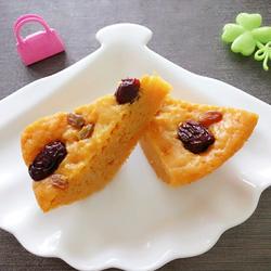 5. Pour the mixed pumpkin dough and put red dates and red dates on top.Raisins, ferment in a warm place until doubled in size